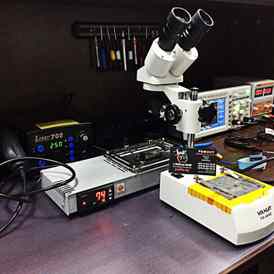 Наши специалисты всегда добросовестно выполняют свою работу, клиент может наблюдать, как ремонтируется его девайс, будь то замена батареи или сложный ремонт по замене микросхем. Большинство ремонтов занимает не больше 15 минут.